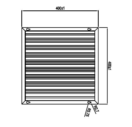1. Flammschutzfilter: DIN EN 16282-6 F1 mit den Maßen: 400 x 400 x 20 mm